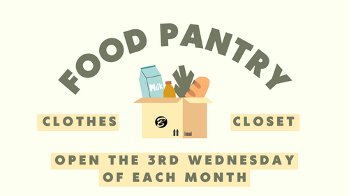 The Date of the Next Open Food Pantry is Always the 3rd Wednesday of each Month from 5:00pm - 7:00pm.